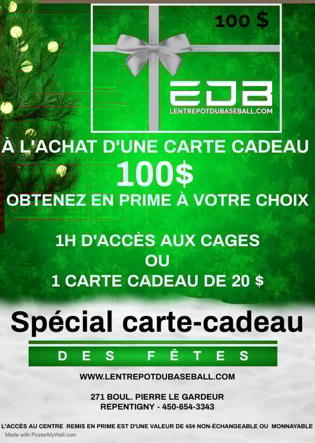 ** Cette promotion n’est pas applicable pour les équipes et/ou les organisations de baseball mineur.